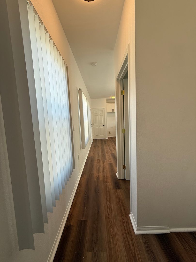 Laminate wood flooring throughout