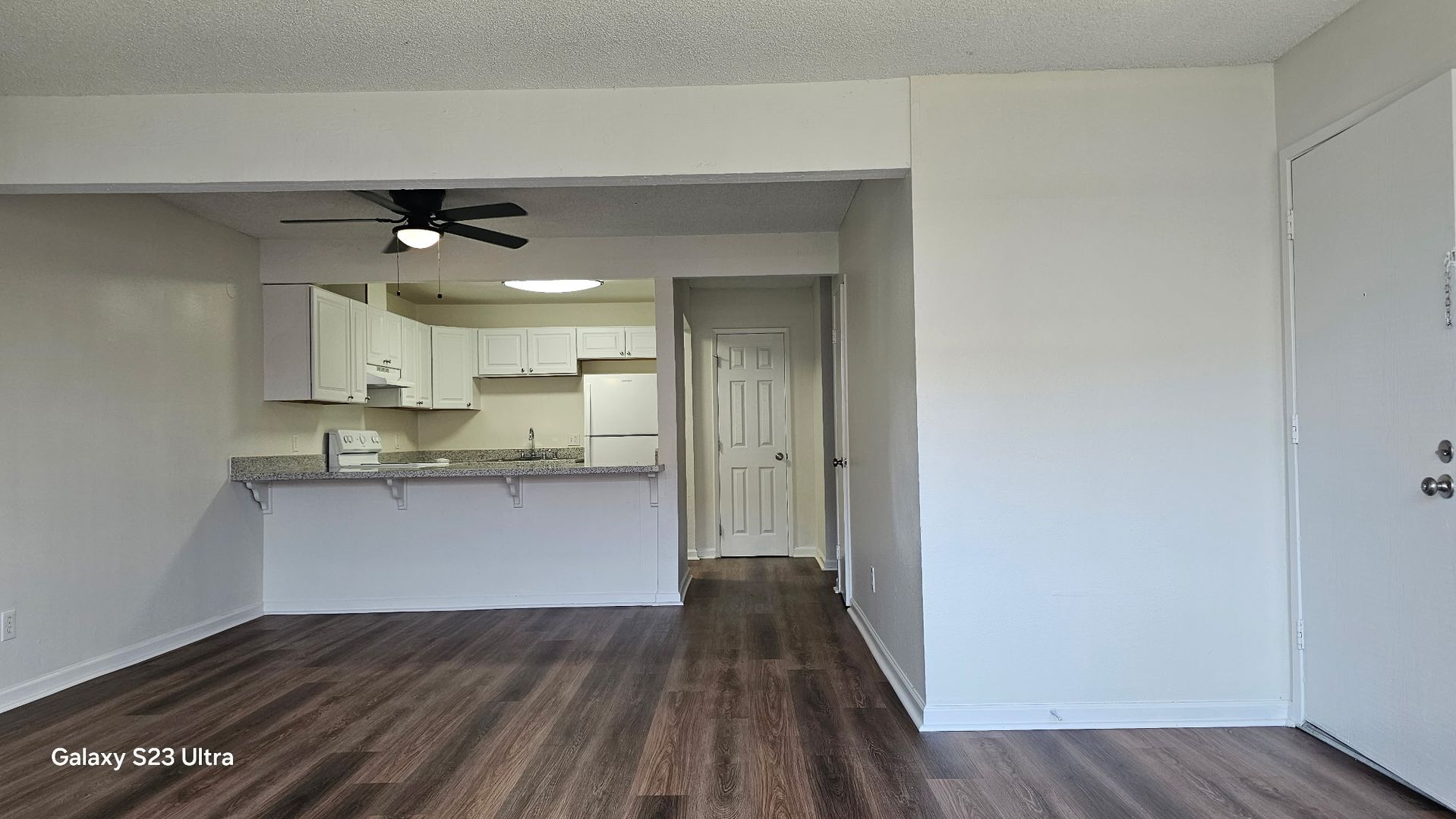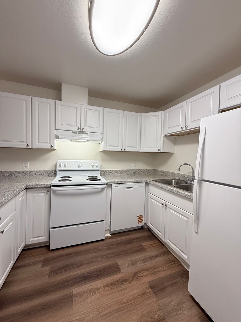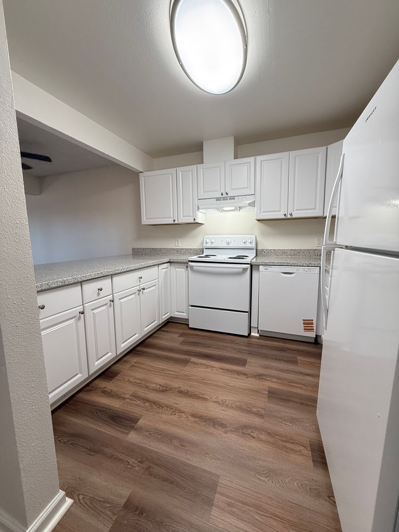 Laminate hardwood floors throughout